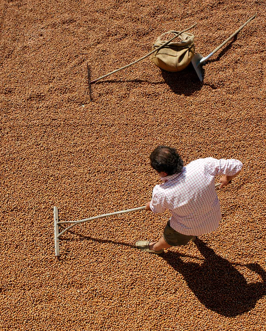 Seguiamo ogni fase della lavorazione con cura e precisione. La raccolta, momento delicato della produzione, avviene a fine agosto, quando i frutti sono pienamente maturi. È fondamentale intervenire con tempestività, in più riprese, per cogliere solole nocciole migliori. Poi l’essiccazione, un rito semplice ma essenziale: le nocciole vengono adagiate in monostrato e lasciate asciugare lentamente al sole,